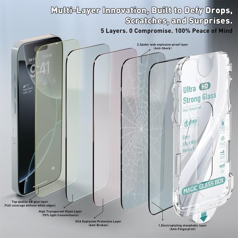 Che si tratti di lavoro, gioco o viaggio, questa protezione assicura che il vostro iPhone 15 Pro Max rimanga al sicuro da graffi, impronte digitali e cadute accidentali, mentre lo strumento di installazione rende l'applicazione a casa rapida e professionale.