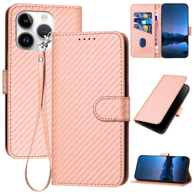Custodia Premium a portafoglio con cinturino per iPhone 15 Pro Max - Struttura in fibra di carbonio