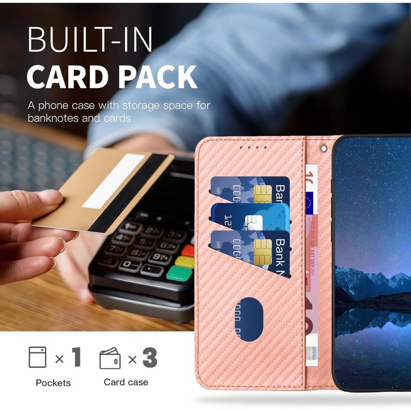 Questa custodia a portafoglio offre un design elegante, una protezione affidabile e un utilizzo intelligente. La finitura in fibra di carbonio testurizzata aggiunge un look moderno e professionale, mentre lo strato interno in TPU assorbe gli urti dovuti a cadute accidentali. Grazie alla funzionalità a mani libere e al cinturino staccabile, è costruita per garantire comfort e versatilità.