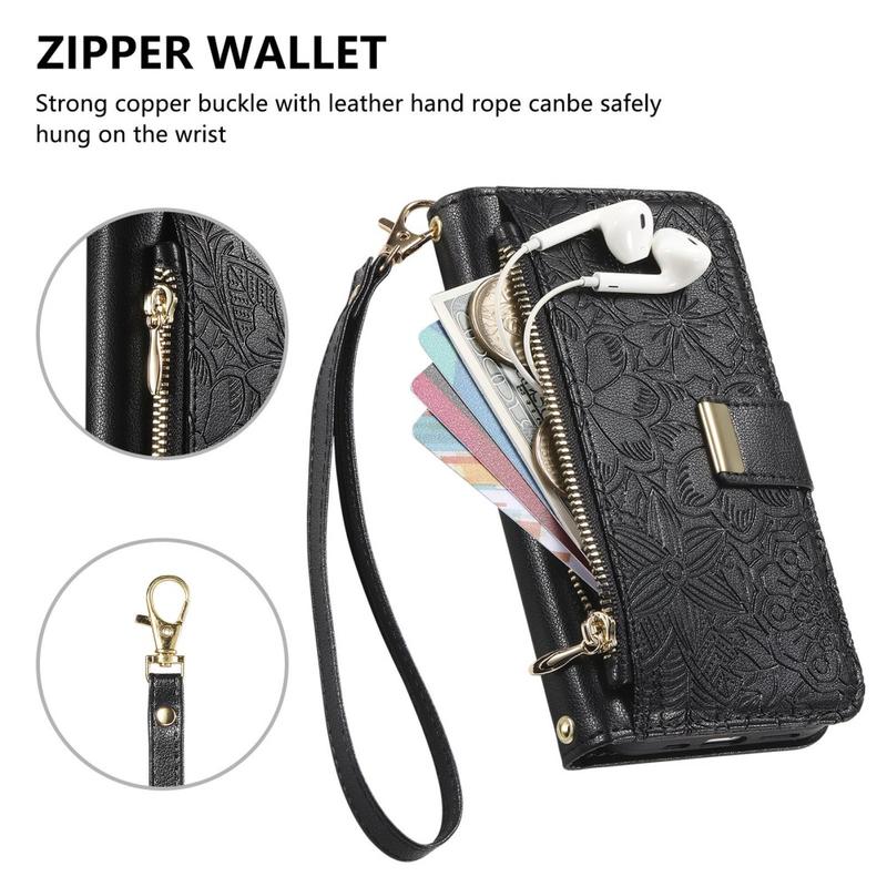 Le custodie a portafoglio sono diventate sempre più popolari come alternativa ecologica al portare con sé sia un portafoglio che una custodia per iPhone 17. Il processo di goffratura floreale non solo migliora l'aspetto, ma rafforza anche la superficie in poliuretano, rendendola più resistente ai graffi.