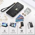 Custodia a portafoglio con motivo floreale e a foglie, tasca con cerniera e cinturino da polso per iPhone 17 Pro