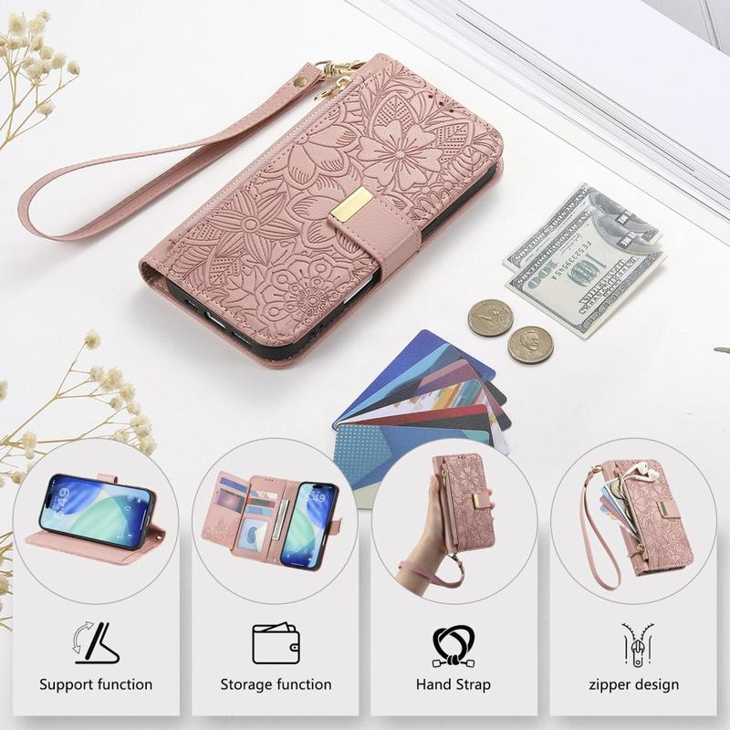 Le custodie a portafoglio sono diventate sempre più popolari come alternativa ecologica al portare con sé sia un portafoglio che una custodia per iPhone 17 Pro. Il processo di goffratura floreale non solo migliora l'aspetto, ma rafforza anche la superficie in poliuretano, rendendola più resistente ai graffi.