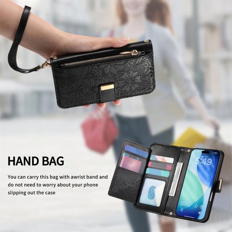 Le custodie a portafoglio sono diventate sempre più popolari come alternativa ecologica al portare con sé sia un portafoglio che una custodia per iPhone 17 Pro Max. Il processo di goffratura floreale non solo migliora l'aspetto, ma rafforza anche la superficie in poliuretano, rendendola più resistente ai graffi.