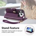 Custodia a portafoglio con motivo floreale e a foglie, tasca con cerniera e cinturino da polso per iPhone 17 Pro Max