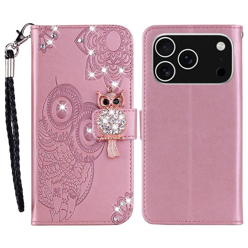 - Custodia a portafoglio con strass di gufo per iPhone 17 Pro