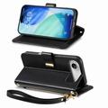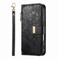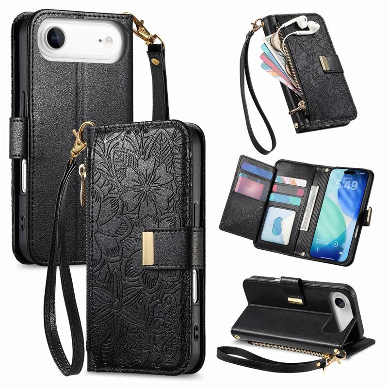 Custodia a portafoglio con motivo floreale e a foglie, tasca con cerniera e cinturino da polso per iPhone Air