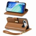 Custodia a portafoglio con motivo floreale e a foglie, tasca con cerniera e cinturino da polso per iPhone Air