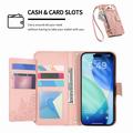 Custodia a portafoglio con motivo floreale e a foglie, tasca con cerniera e cinturino da polso per iPhone Air