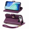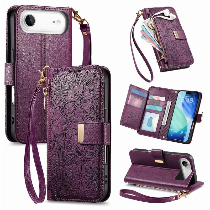 Custodia a portafoglio con motivo floreale e a foglie, tasca con cerniera e cinturino da polso per iPhone Air