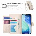 Custodia a portafoglio con motivo floreale e a foglie, tasca con cerniera e cinturino da polso per iPhone Air