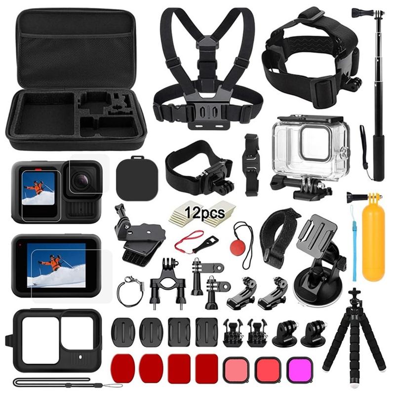 Kit di accessori 39 in 1 per GoPro Hero13 Black - Custodia impermeabile, cinghia per il petto e per la testa, bastone per selfie, supporti + protezioni per lo schermo 9H