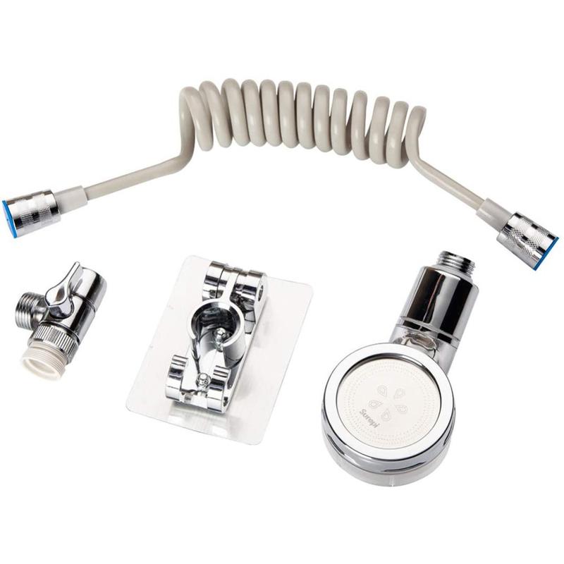 Il set comprende un ugello per doccia manuale, una valvola deviatrice, un tubo flessibile e una staffa di montaggio. È sufficiente fissare il deviatore al rubinetto e collegare il tubo flessibile, senza bisogno di attrezzi o esperienza idraulica.