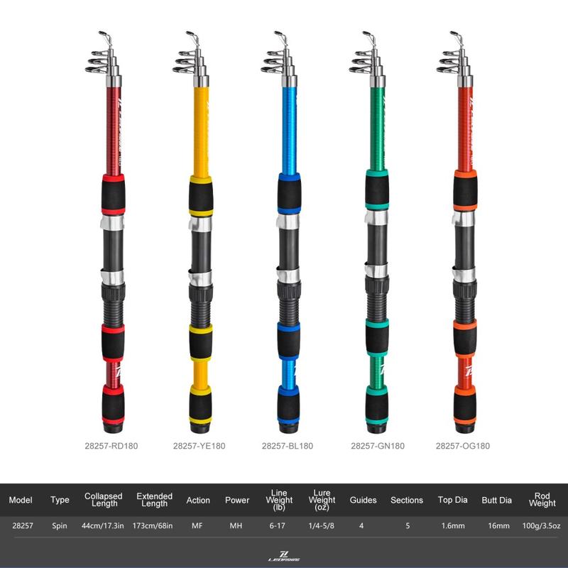 LEO 28257 Canna da pesca telescopica in fibra di vetro da 1.73m - Mini canna da viaggio ultraleggera