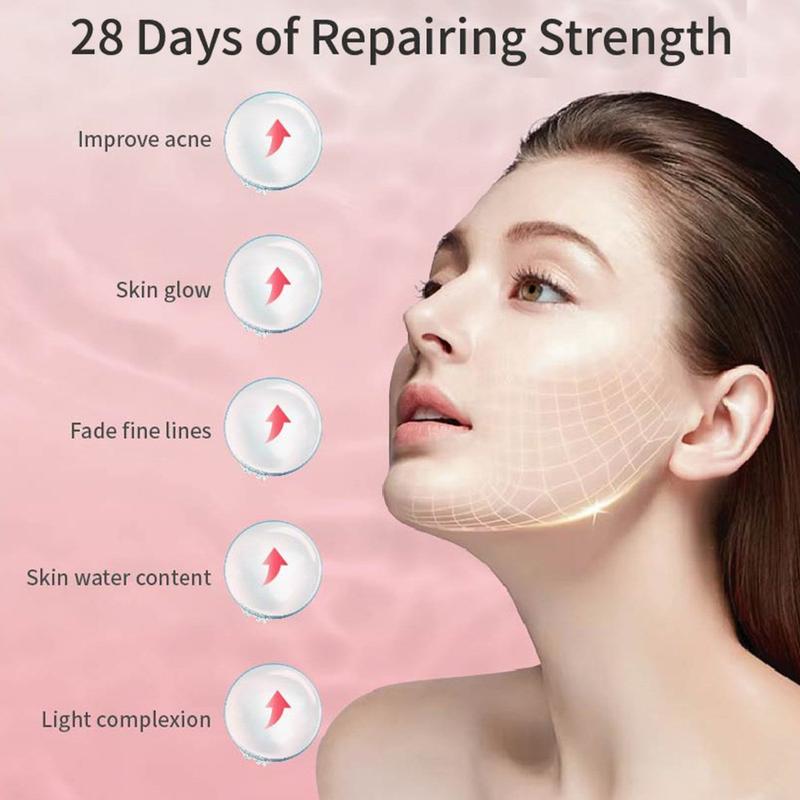- Schiarimento della pelle: La luce verde e bianca uniforma il tono e migliora la luminosità.