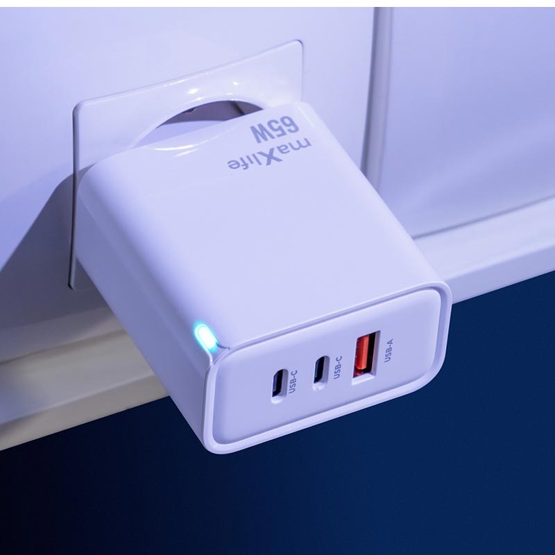Maxlife MXTC-09-65ACC è un caricatore rapido GaN da 65W, compatto ma potente, progettato per caricare più dispositivi contemporaneamente senza sacrificare la velocità o la stabilità. Con due porte USB-C e una porta USB-A, supporta smartphone, tablet, cuffie, e-reader e persino ultrabook, diventando la soluzione di ricarica all-in-one perfetta per la casa, l'ufficio e i viaggi.