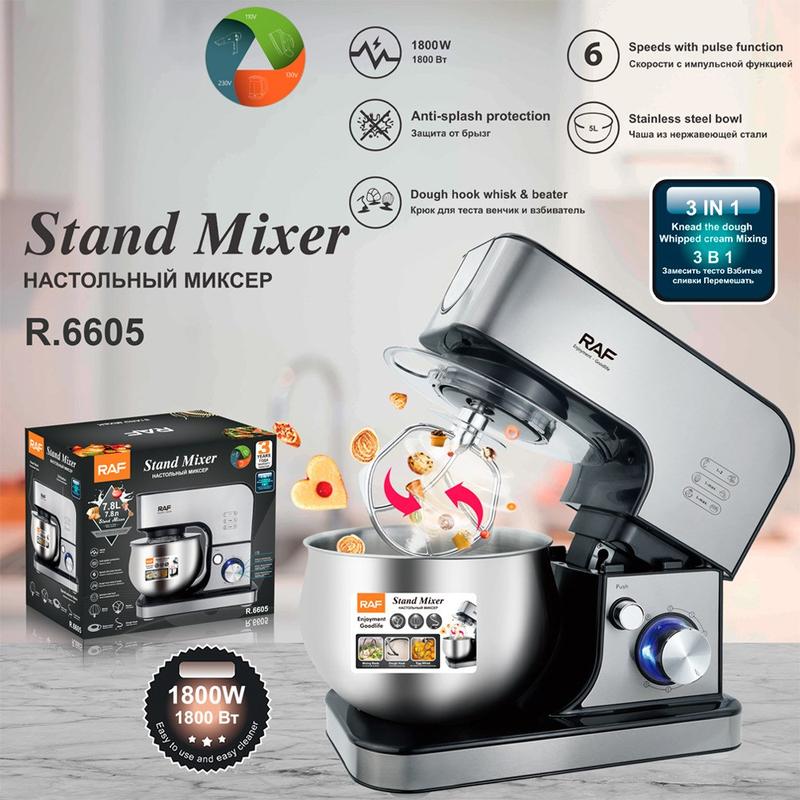 L'impastatrice automatica RAF R6605 è un elettrodomestico da cucina potente e versatile, progettato per semplificare la cottura quotidiana. Con un robusto motore da 1800 W, un'ampia ciotola in acciaio inox da 5 L e molteplici accessori per la miscelazione, è in grado di impastare, frullare, montare e miscelare facilmente un'ampia gamma di ricette.