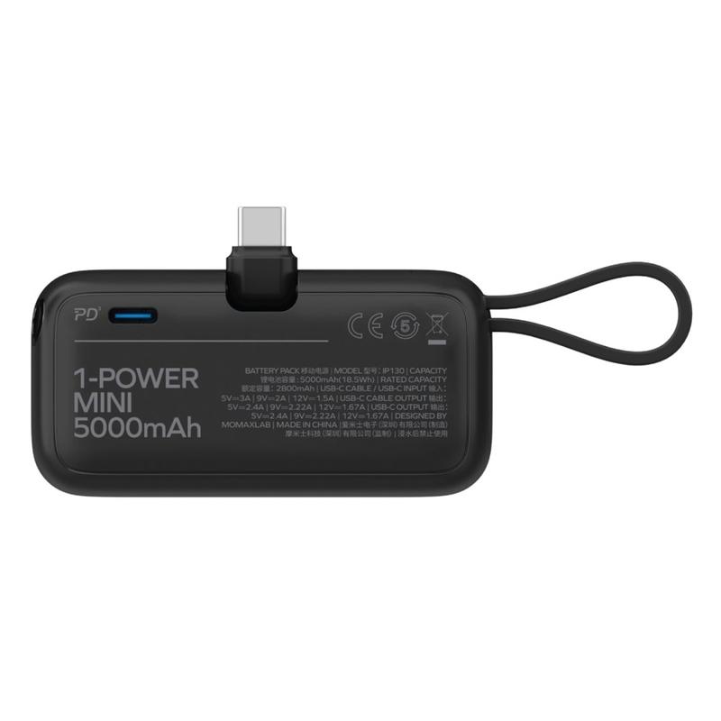 Momax 1-Power Mini Pop Art 5000mAh Power Bank / Caricabatteria portatile con spina USB-C, cavo USB-C, porta USB-C - 20W