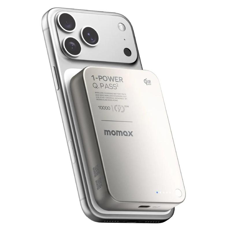Potenziatevi velocemente e rimanete senza cavi con il power bank magnetico wireless Q.Pass2 Qi2.2 di MOMAX 1-Power. Realizzato per gli iPhone della serie 12-17, si aggancia magneticamente per una presa sicura e inizia a caricarsi all'istante, perfetto per gli spostamenti, i viaggi e le giornate più impegnative. Grazie all'uscita wireless Qi2 25W (MPP), offre una ricarica magnetica efficiente, mentre la porta USB-C PD fino a 30W offre un'opzione cablata ad alta velocità per telefoni, tablet e altri dispositivi compatibili. La capacità di 10.000 mAh consente di effettuare più ricariche e la struttura in vetro e alluminio di prima qualità con bordi anti-scivolo rende l'apparecchio piacevole come le sue prestazioni.