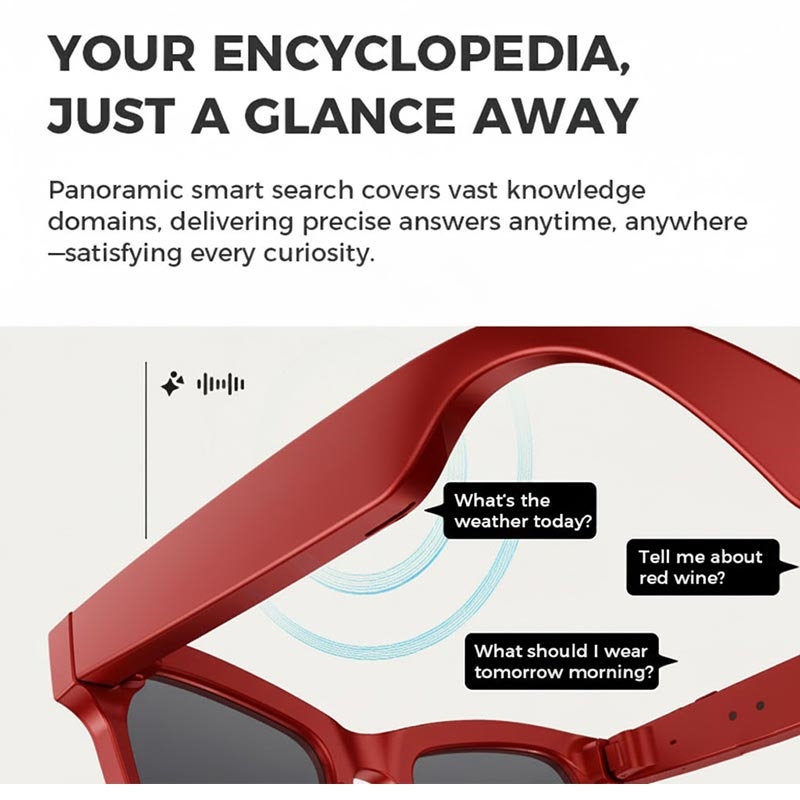 Le funzioni AI, tra cui il riconoscimento degli oggetti, i comandi vocali, l'interazione con i dialoghi e la traduzione in tempo reale, migliorano la praticità e aprono una comunicazione senza soluzione di continuità tra le varie lingue. I doppi altoparlanti con amplificatori indipendenti forniscono un audio ricco e chiaro sia per la riproduzione musicale che per le chiamate, mentre i microfoni a riduzione del rumore garantiscono una qualità vocale nitida.