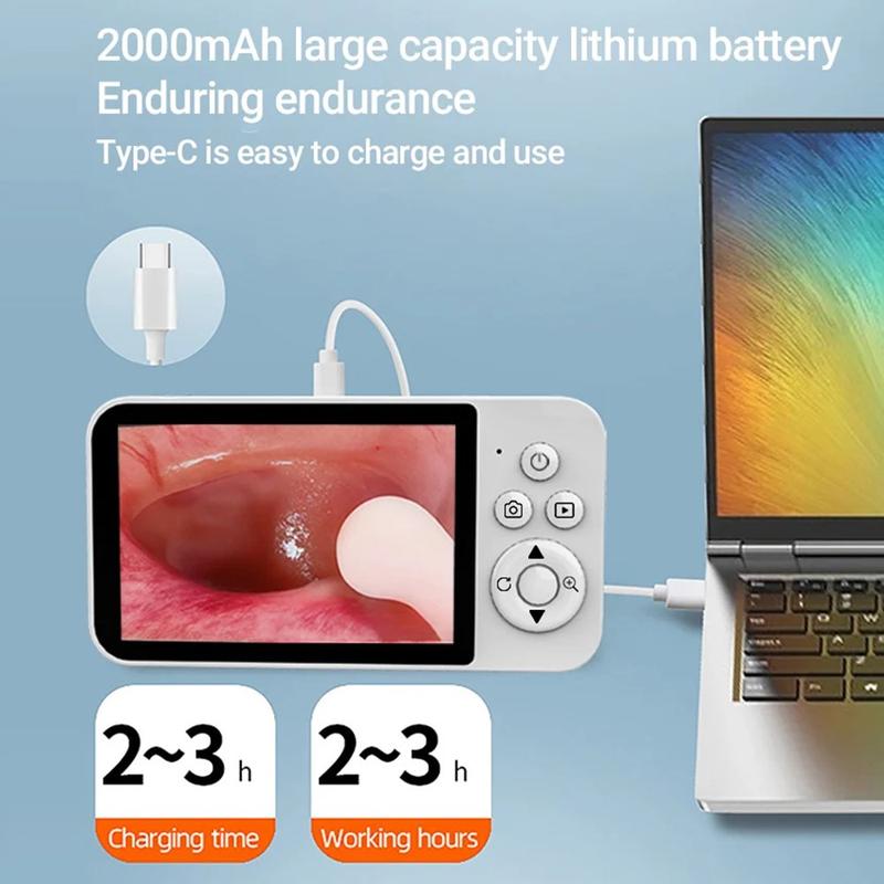 Dotato di una batteria al litio da 2000mAh, l'otoscopio offre 3-4 ore di utilizzo continuo, ideale per esami approfonditi sia per adulti che per bambini.