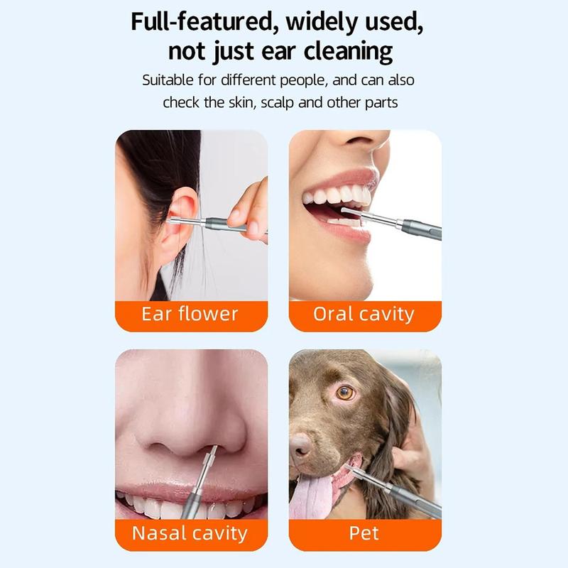 Sei luci LED integrate ad alta luminosità illuminano il condotto uditivo per una migliore visibilità, consentendo di individuare facilmente accumuli di cerume, detriti e infiammazioni.