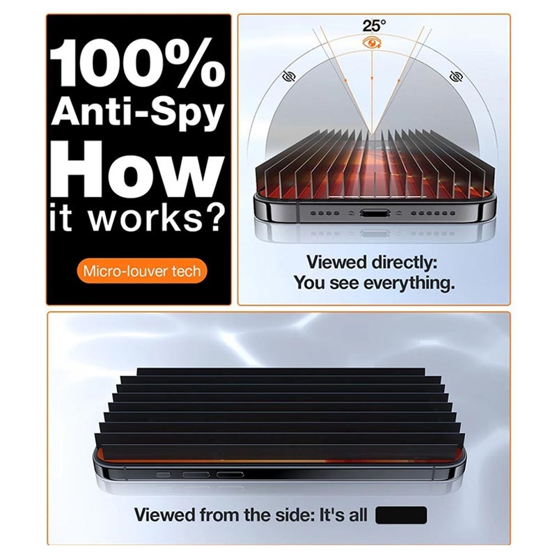 - Tecnologia anti-spia: blocca la vista laterale, garantendo che lo schermo rimanga visibile solo a te, proteggendo le informazioni sensibili negli spazi pubblici.