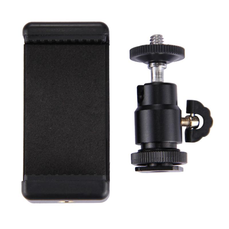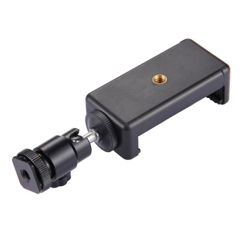 Puluz PU214 Testa per treppiede a contatto caldo da 1/4" + morsetto per treppiede per smartphone (larghezza morsetto: 6-7,6 cm)