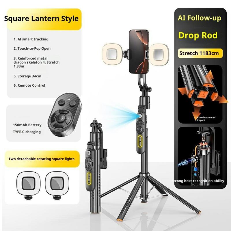 Q625 Quadripiede Bastone per selfie con tracciamento Bluetooth AI - Doppie luci di riempimento a forma di H, Anti-Shake, telecomando