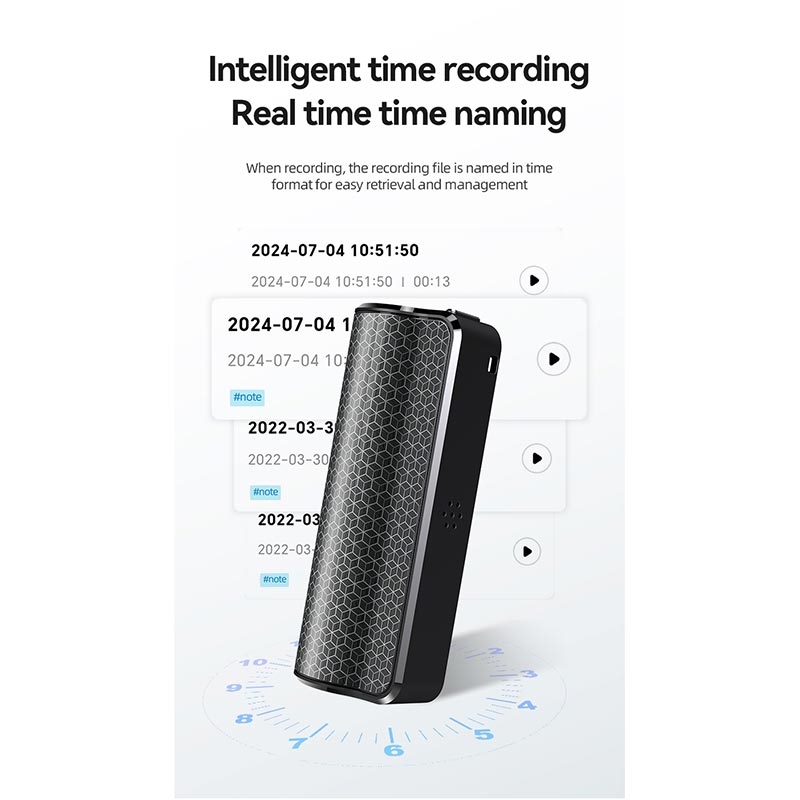 Il registratore vocale digitale intelligente Q70A è progettato per professionisti, studenti e creativi che necessitano di una registrazione audio affidabile e di alta qualità e di funzionalità AI avanzate in un unico dispositivo compatto. Con un'acquisizione audio cristallina, un attacco magnetico e una trascrizione in tempo reale in 188 lingue, questo registratore stabilisce un nuovo standard di praticità ed efficienza.