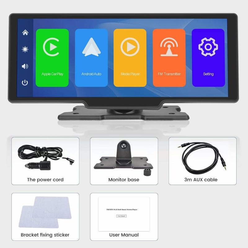 Il design rettangolare dello schermo riduce l'ostruzione visiva. Grazie alla staffa universale, agli adesivi di montaggio e all'alimentatore per accendisigari in dotazione, l'installazione è rapida e senza problemi, senza bisogno di aiuto professionale.