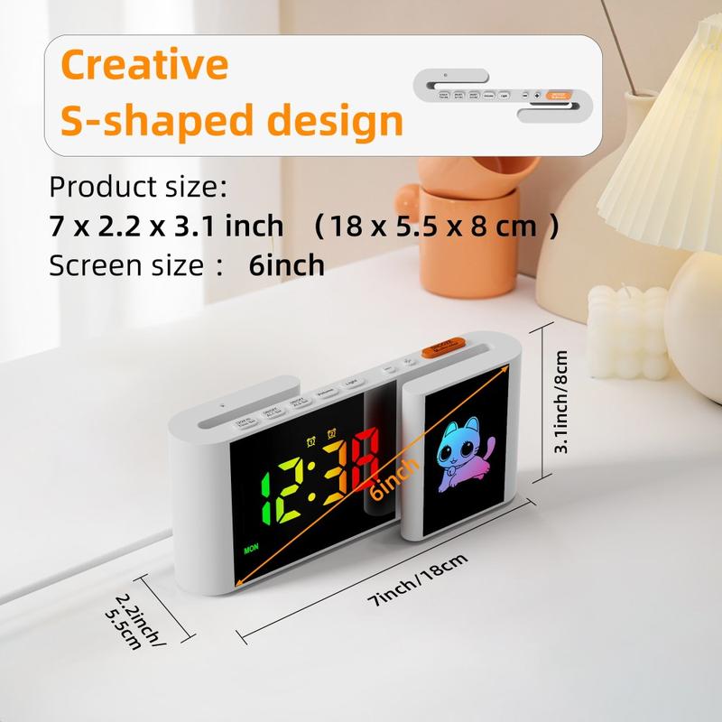 - Design esclusivo con doppio schermo a forma di S - Il layout creativo con curva a S separa il display dell'orologio e la luce notturna per un look elegante e moderno che valorizza qualsiasi arredamento.