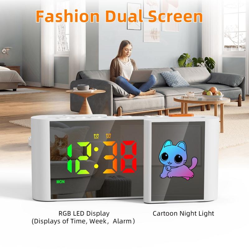 S-Shape RGB Cartoon Animal Sveglia a doppio schermo per bambini con display 12/24 ore e luce notturna