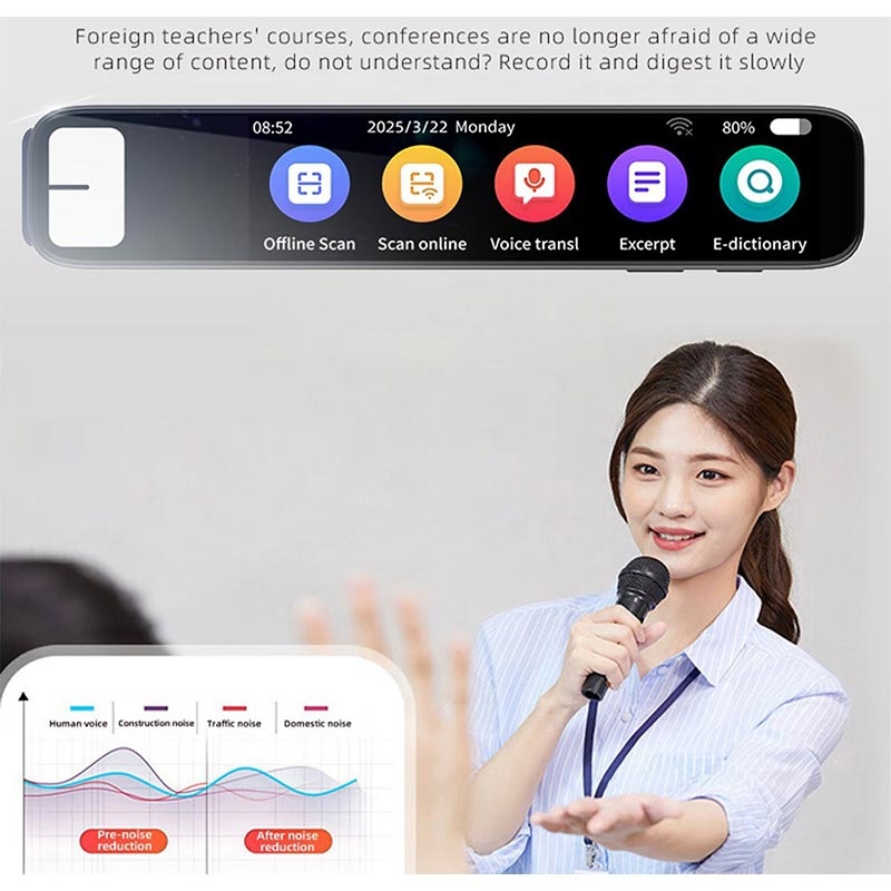 Rompete le barriere linguistiche con il traduttore vocale intelligente S08B, un dispositivo compatto e potente progettato per viaggiatori, studenti e professionisti. Dotato di un touchscreen capacitivo da 3,69 pollici, questo traduttore offre interazioni fluide e chiare. Con 134 lingue supportate, offre traduzione vocale in tempo reale, traduzione di foto e traduzione di scansioni per coprire quasi tutte le situazioni. Dotato di un processore quad-core, 1 GB di RAM e 8 GB di memoria (espandibile fino a 32 GB), offre prestazioni affidabili sia per la traduzione che per l'apprendimento. Leggero e portatile, può essere facilmente riposto in tasca, diventando così lo strumento di comunicazione ideale in ogni parte del mondo.