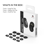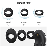 - Le tre misure (S / M / L) si adattano a condotti uditivi da 10 mm a 14 mm, garantendo sessioni di ascolto più lunghe senza punti di pressione.