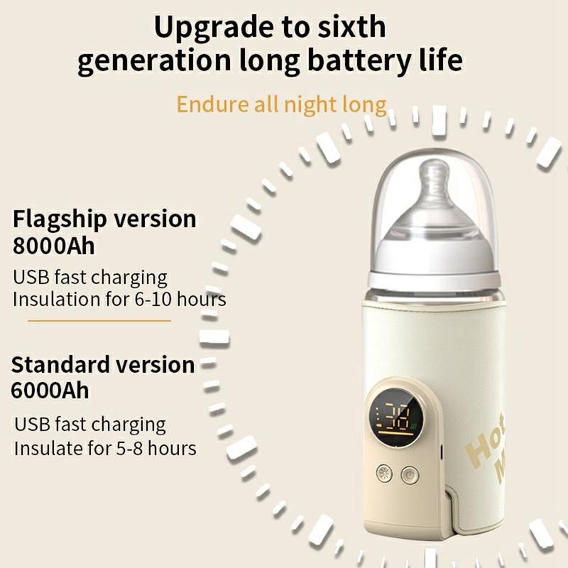 Dotato di una potente batteria al litio da 8000mAh, lo scaldabiberon garantisce un funzionamento wireless prolungato. Ideale per i viaggi, le poppate notturne, le passeggiate all'aperto o le emergenze in cui le prese di corrente non sono disponibili.