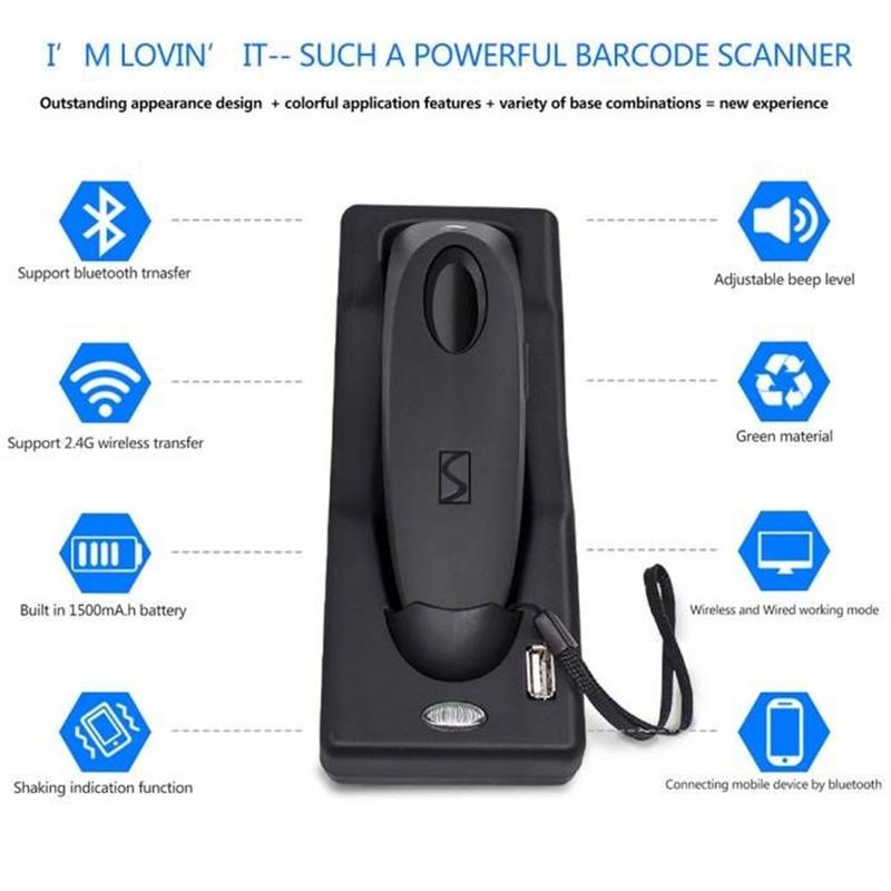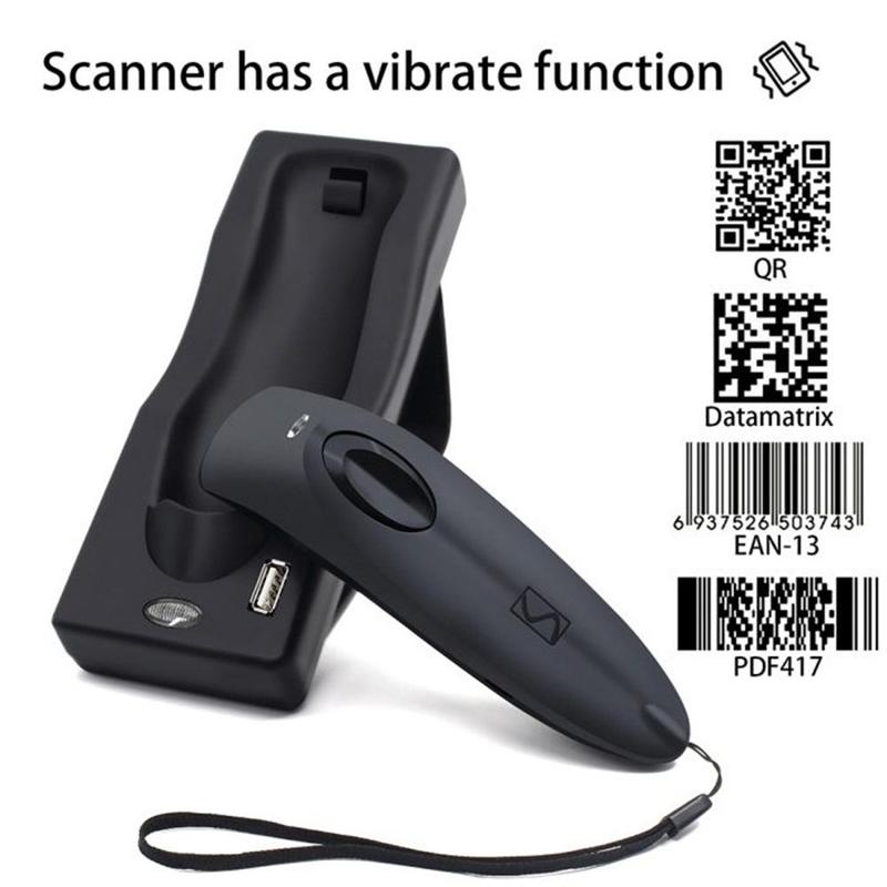 Scanner di codici a barre 2D wireless R40 - Lettore di codici QR Bluetooth 4.0 e 2.4GHz con base di ricarica, 1500 scansioni/s