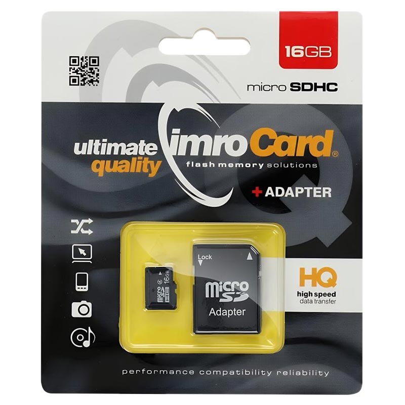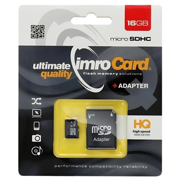 Ampliate la memoria del vostro dispositivo con la scheda di memoria IMRO microSDHC da 16GB. Progettata per l'uso quotidiano, offre prestazioni affidabili per smartphone, tablet, fotocamere e altri dispositivi compatibili. Con velocità di lettura fino a 85 MB/s e velocità di scrittura fino a 43 MB/s, supporta trasferimenti di file fluidi, archiviazione di foto e registrazione di video Full HD. L'adattatore SD incluso consente un facile utilizzo in dispositivi con slot per schede SD standard.