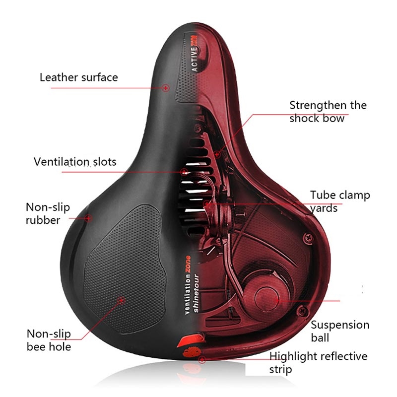 Ampio seggiolino da bicicletta imbottito e morbido - Sella da bicicletta antiurto riflettente con sfera di sospensione