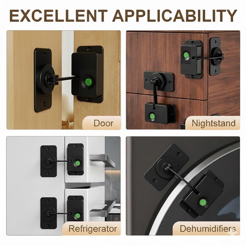 Il lucchetto di sicurezza per bambini con impronte digitali V86 è progettato per una protezione versatile su tutte le superfici domestiche, compresi frigoriferi, cassetti, comodini, armadi, finestre, lavatrici e schedari. Grazie alle opzioni di installazione adesiva (senza forare) e di montaggio a vite, si adatta facilmente a diverse configurazioni.
