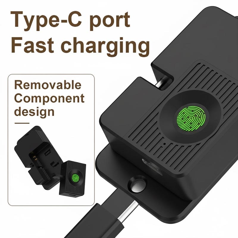 Progettato per un basso consumo energetico, il lucchetto intelligente dura fino a 10 mesi con una singola carica (con circa 5 sblocchi al giorno). La ricarica è facile e veloce grazie alla porta USB-C, per garantire che il lucchetto sia sempre pronto all'uso.