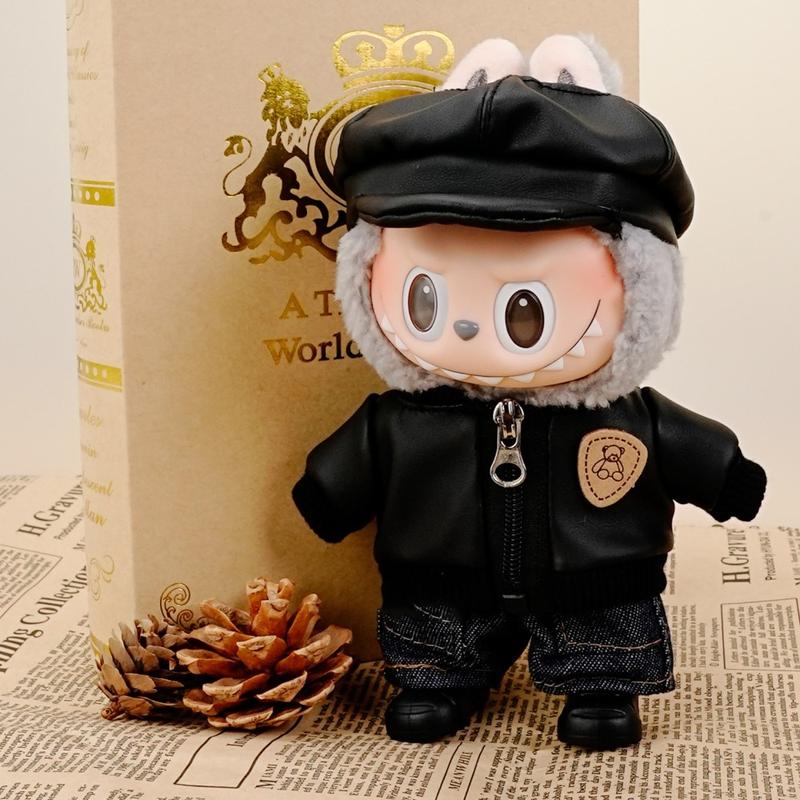 Set di abiti da aviatore vintage per bambola Labubu 17 cm - Costume sostituibile da 5 pezzi con maglietta, giacca, jeans, cappello e scarpe per figurine Gen 1 / 2 / 3