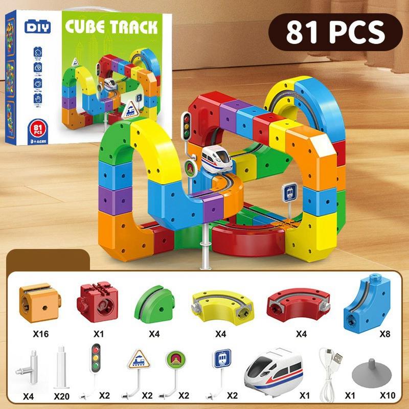 Set di binari magnetici per treni da 81 pezzi - Giocattolo educativo STEAM con mini-treno ricaricabile