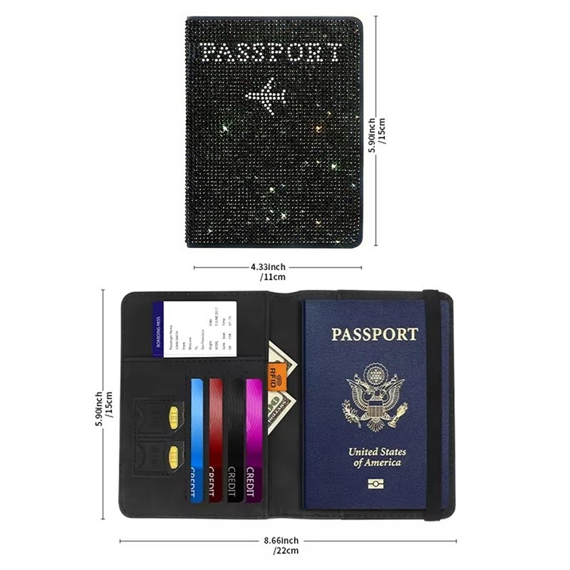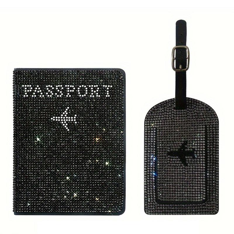 Set di portapassaporti e etichette per bagagli con strass - Organizzatore da viaggio in poliuretano scintillante