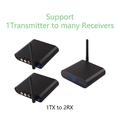 - Uscita uno-due - Un trasmettitore supporta due ricevitori per la riproduzione simultanea su più schermi.