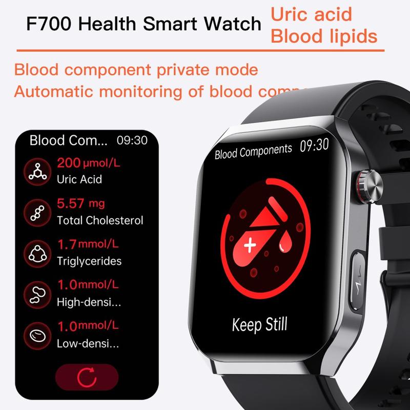 Lo Smart Watch F700 è progettato per gli utenti che desiderano un monitoraggio completo della salute, funzioni di sicurezza e tracciamento del fitness in un unico elegante orologio da polso. Dotato di ECG, analisi della composizione corporea, report HRV e monitoraggio dell'ossigeno nel sangue a luce rossa, offre una panoramica di livello professionale della vostra salute. Strumenti di sicurezza avanzati come l'SOS e il rilevamento delle cadute garantiscono una maggiore tranquillità, mentre il monitoraggio scientifico del sonno e la gestione dello stress aiutano a mantenere l'equilibrio ogni giorno. Grazie alle 52 modalità sportive, ai quadranti personalizzabili e alla connettività Bluetooth 5.3, l'F700 è tanto versatile quanto potente, ed è il partner perfetto sia per uno stile di vita attivo che per l'uso quotidiano.