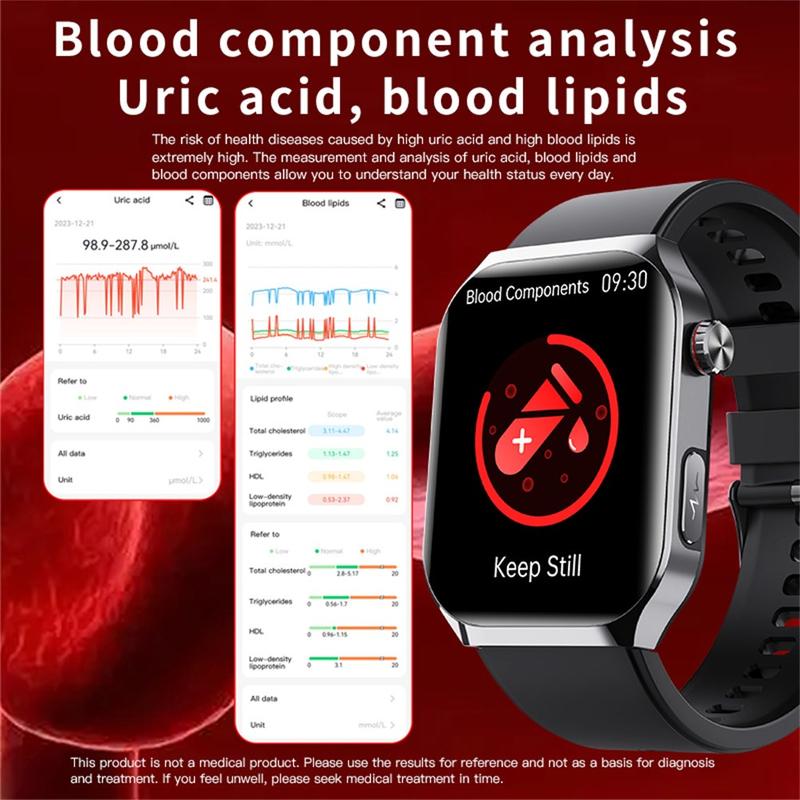 - Monitoraggio completo della salute - ECG, rapporto HRV, composizione corporea, ossigeno nel sangue a luce rossa e valutazione non invasiva della glicemia.