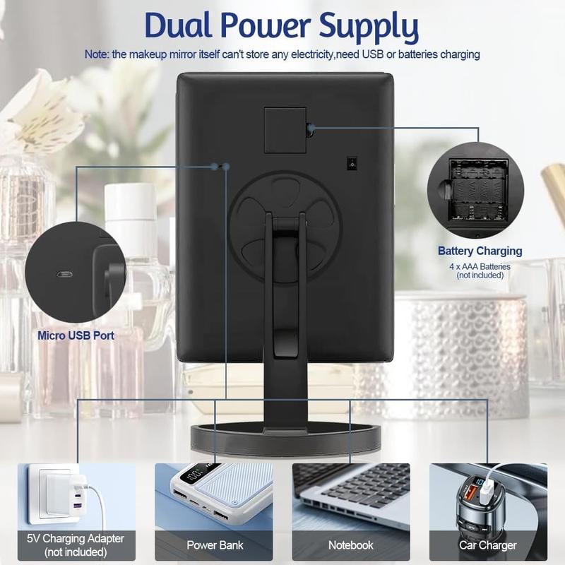 Illuminate la vostra routine di bellezza con lo specchio da trucco LED pieghevole a 3 lati, progettato per offrire precisione, luminosità e flessibilità per un'applicazione impeccabile del trucco. Grazie all'illuminazione regolabile e alle diverse opzioni di ingrandimento, questo elegante specchio da tavolo consente di ottenere risultati di qualità da salone direttamente a casa.