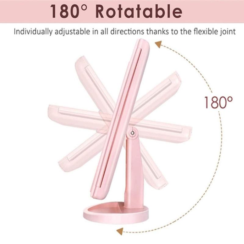 Lo specchio per il trucco a LED pieghevole su 3 lati combina un design elegante con caratteristiche pratiche come la luminosità regolabile e gli ingrandimenti multipli. La sua forma compatta e pieghevole lo rende sia un bellissimo accessorio da vanità che un comodo compagno di viaggio.