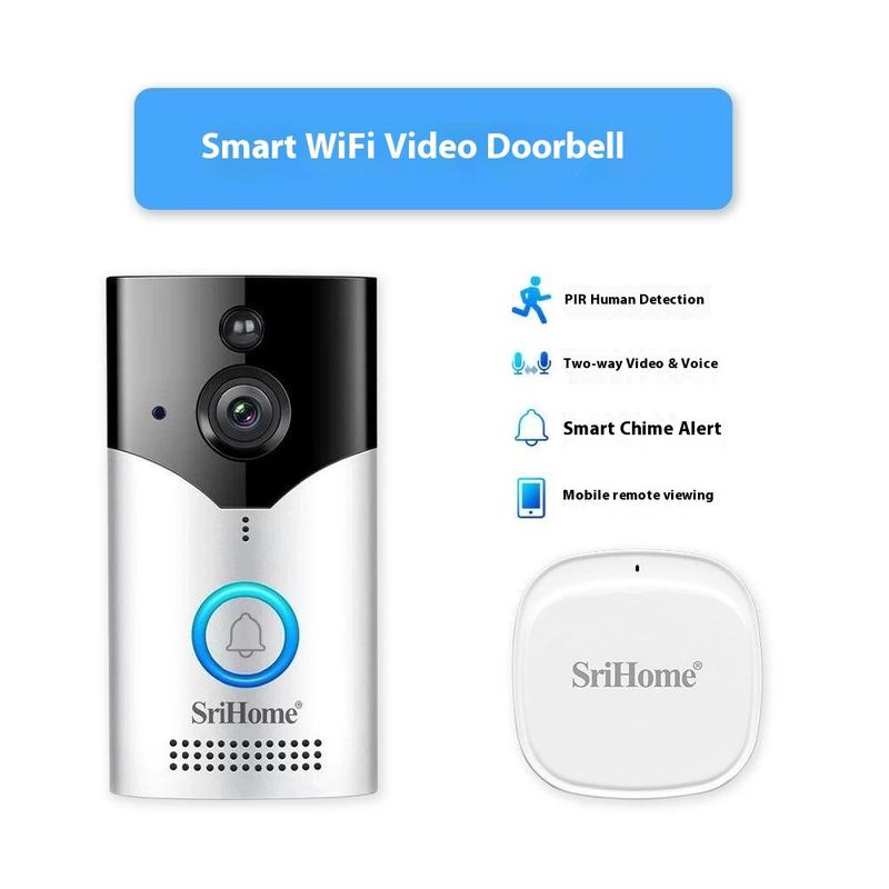 SRIHOME DH002 Videocitofono intelligente - Videocamera WiFi HD da 4MP con visione notturna, rilevamento del movimento PIR e audio bidirezionale