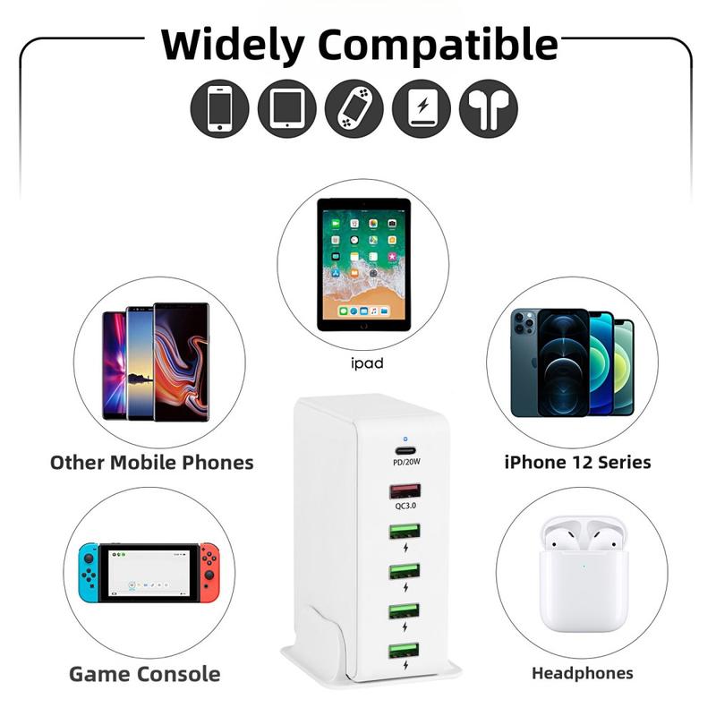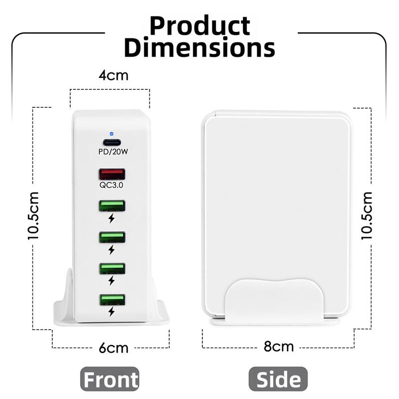 Ricarica più intelligente con la stazione di ricarica multiporta 818PD, progettata per offrire prestazioni affidabili ad alta velocità per tutti i dispositivi. Grazie al supporto dei protocolli di ricarica rapida PD20W e QC3.0, questo hub di ricarica compatto assicura che il vostro smartphone, tablet o accessori siano alimentati in modo rapido e sicuro ovunque vi troviate.